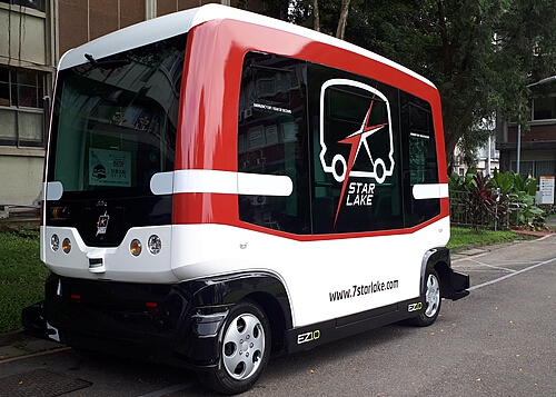 臺灣大學跟喜門史塔雷克產學合作,引進首輛電動無人駕駛巴士EZ10,開放民眾試乘,至本月13日結束。