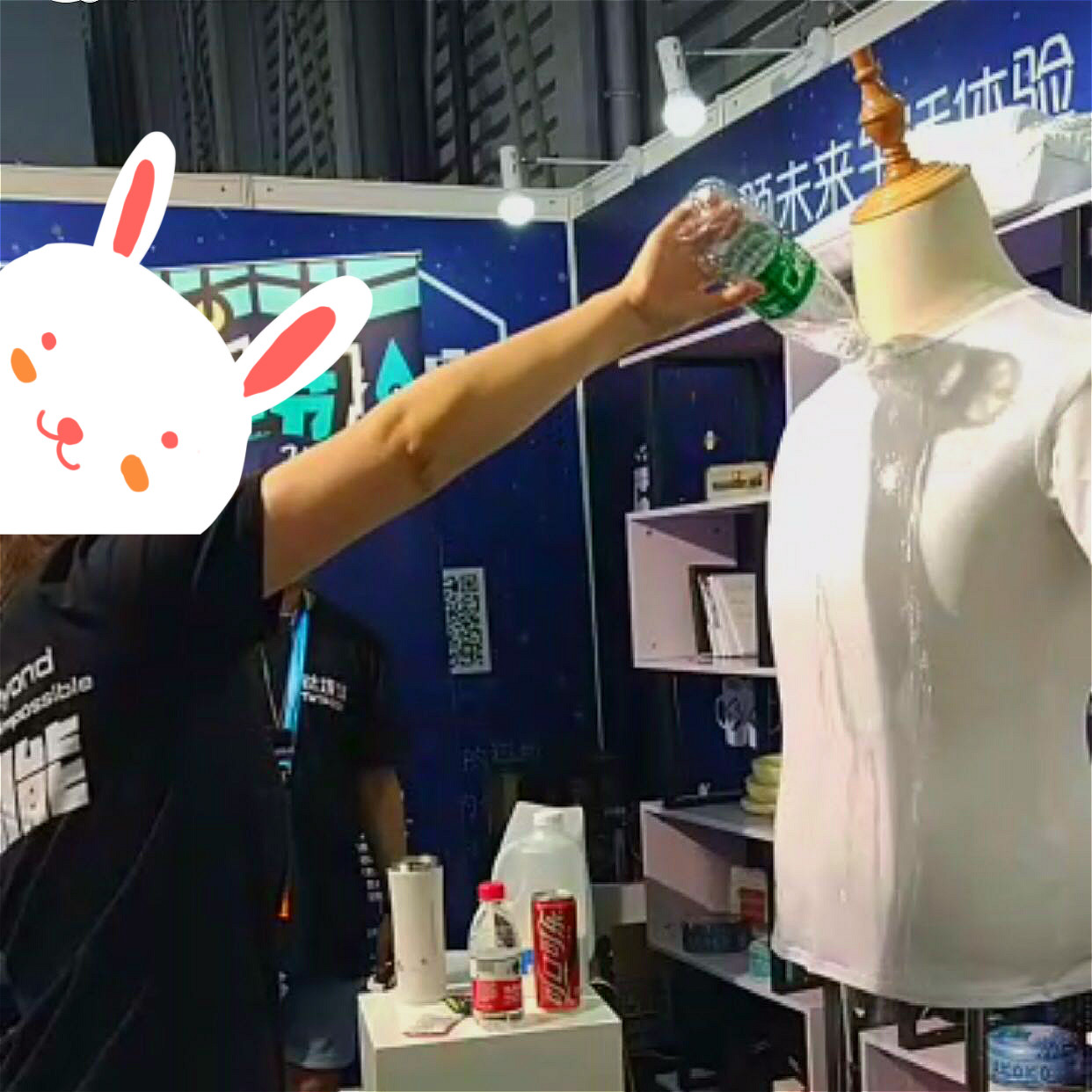 空姐現場演示防水T恤,,這個一流的防水效果,親眼所見,很治愈強迫癥呀~