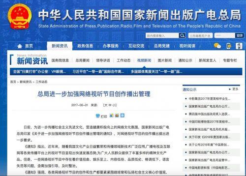 廣電總局加強網絡視聽節目辦理:不得播出任何“未刪減版”節目