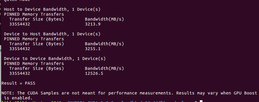 接著在上一個終端中輸入 :$ cd /home/lxxx/NVIDIA_CUDA-9.0_Samples/bin/x86_64/linux/release 其中xxx是你自己的用戶名