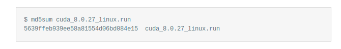 輸入命令:$ md5sum cuda_9.0.176_linux.run