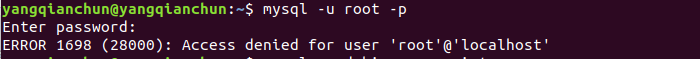 其-u是user -p是端口。登錄時出現ERROR 1698 (28000): Access denied for user ‘root'@‘localhost'。這應該時我們之前安裝時候,密碼忘記了或者不記得初始化密碼造成的: