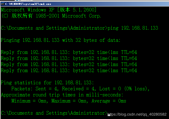 2.ping 服務端ip(192.168.81.133),測試能否訪問服務器