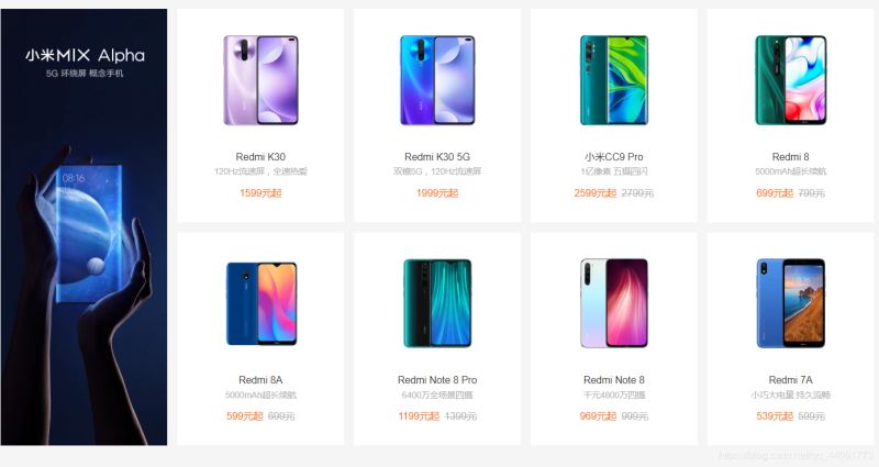說到九宮格是不是想到了九宮格火鍋那(O(∩_∩)O哈哈~)。其實九宮格布局在各大網站基本都有應用,當然這里的九宮格是泛指(O(∩_∩)O哈哈)。比如小米商城局部布局如下: