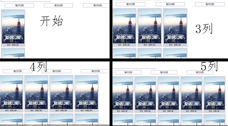 在我點擊上方按鈕時可以實現不同列數的展現。