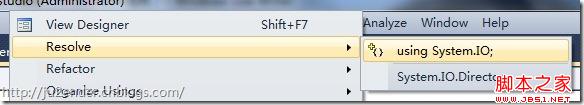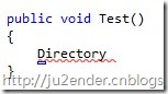這時可以看到沒using System.IO的情況下,Directory是被劃上紅線的,可以注意到開頭出有個小矩形,鼠標移上去,按下后可以看到選項: