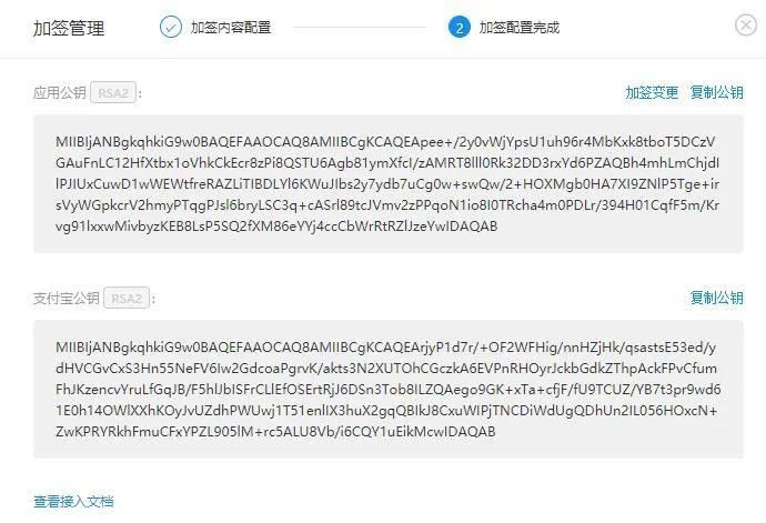 此時會出現應用公鑰和支付寶公鑰,將支付寶公鑰保存起來,如圖: