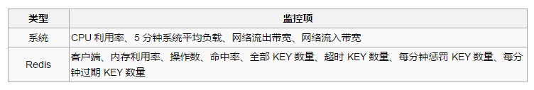 緩存服務性能監控統計指標均以平均值作為統計指標。