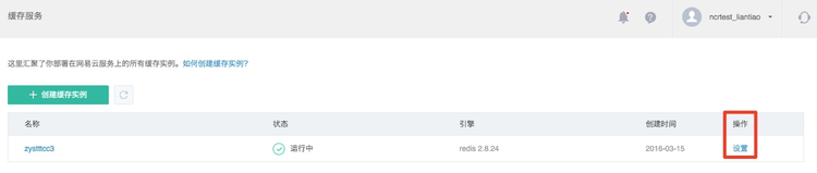 在「緩存服務」主界面,點擊該實例「操作欄」的「設置」按鈕;