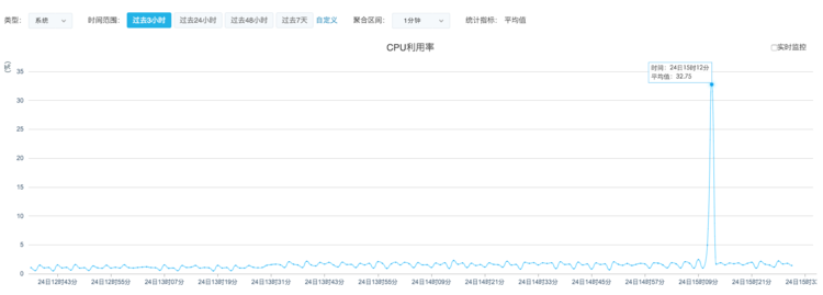 若通過快捷鍵設定時間范圍為「過去 3 小時」或「過去 24 小時」,我們提供實時監控功能。勾選/取消勾選 各性能監控數據曲線圖右上角的「實時監控」,即可 開啟/關閉 監控數據實時刷新。