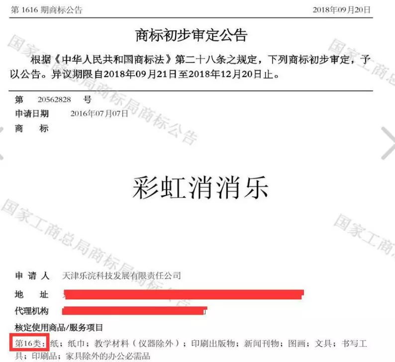 這么一個全民都喜愛的游戲,怎么可能不進行注冊商標(biāo)呢?小知查詢到,關(guān)于“開心消消樂”的正牌公司“天津樂浣科技發(fā)展有限責(zé)任公司”申請了以“消消樂”首字的商標(biāo),包括“消消樂萌萌團”共164件,“開心消消樂”申請了46件,9月20日的商標(biāo)初審公告中,“彩虹消消樂”已經(jīng)初審公告,那么,消消樂注冊成功了,彩虹消消樂也可以申請?
