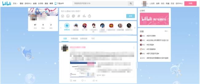 2017年,B站上線“動態”模塊,在UI設計邏輯上與微博主頁極為相似,同時集合了及時分享、信息流、個人信息、推薦話題與頂部菜單欄。這被認為是B站試水深度社區運營的重要一步。