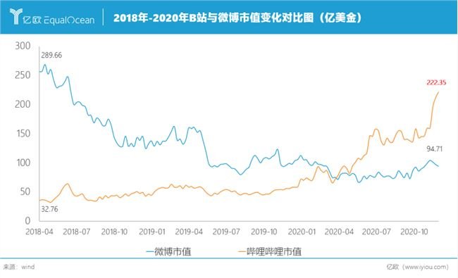 無論是從賽道還是從用戶潛力來看,B站的想象力都高于微博,資本市場的表現已經證明了這一點。