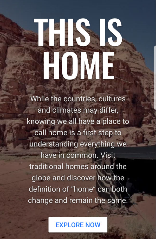 比來Google Earth 和 Google 街景又合作推出了一個非常有趣的虛擬現實街景欄目——This is Home。所有用戶都可以通過這個項目看到全世界差別地域、風俗的特色民宿建筑,通過Google 一個人能看到的世界越來越廣、越來越真實。