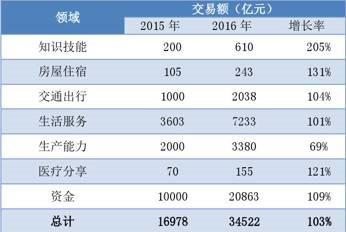 日前,國家信息中心發布的《中國分享經濟發展陳訴2017》顯示, 2016 年中國分享經濟市場交易額約為3. 45 萬億元,同比增長103%,中國分享經濟正步入發展的黃金期。