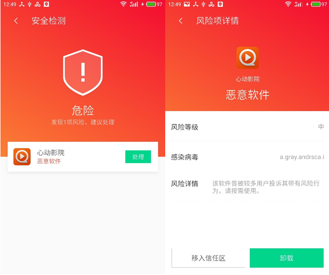 (圖:騰訊手機管家查殺色情類病毒應(yīng)用)