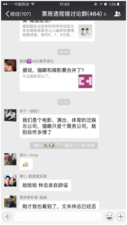 貓眼、娛票兒、淘票票已經形成了三足鼎立的新格局。不過近日有媒體爆料稱,貓眼和娛票兒有可能合并,雖然微影時代CEO林寧立即否認了這一消息,還調侃貓眼是“自作多情”,但筆者認為這種否認更像是合并前的一種高調示威,在談判中占領輿論高地的行為。