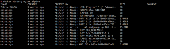 相比起來,正常的alpine:3.12只有5.57MB,說明即使我們已經刪除了 /sample.dat 文件,在最后的鏡像中也沒有這個內容,但是它永遠留在了鏡像的history中。