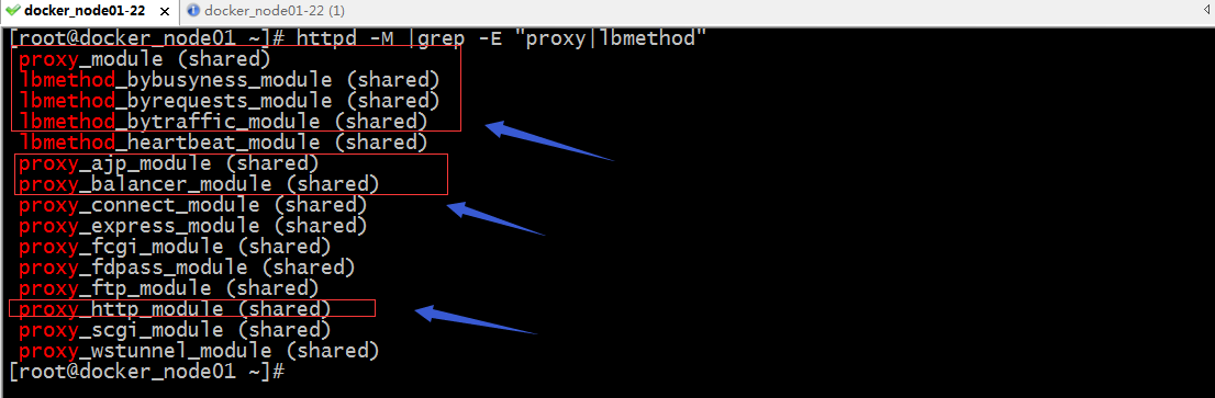 httpd做負載均衡器,需要確認httpd是否開啟了proxy_http_module、proxy_module 、proxy_balancer_module如果需要用到ajp還需要確定proxy_ajp_module模塊是否啟用,以及調度算法的三個模塊lbmethod_bybusyness_module 、lbmethod_byrequests_module、lbmethod_bytraffic_module;以上模塊對于調度算法來說用到那個啟用那個也行,對于http或者ajp也是一樣的;用得到就啟用,用不上不啟用也沒關系;