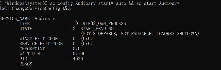 sc config Audiosrv start= auto && sc start Audiosrv