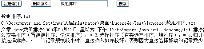 現(xiàn)在整個lucene.net搜索全文的過程就建立完了,現(xiàn)在可以搜索txt格式的文件,搜索其他格式的文件在以后添加,主要核心思想就是提取各個不同格式文件的文本內(nèi)容。