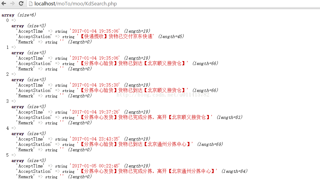 $result = $this->getcontent("http://www.kuaidi100.com/query?type={$keywords}postid={$order}");