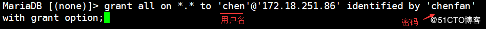 grant all on *.* to 'chen'@'172.18.251.86' identified by 'chenfan' with grant option;