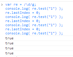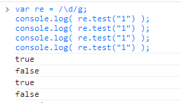 console.log( re.test("1"), re.lastIndex );