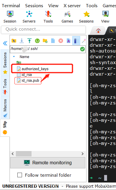 2.遠程登錄服務器,進入/home/user_name/.ssh/,將id_rsa.pub中的內容復制到authorized_keys中(如果沒有,請自己創建),保存。(遠程服務器上最終找到.ssh的路徑可能有所不同,可以自己尋找)