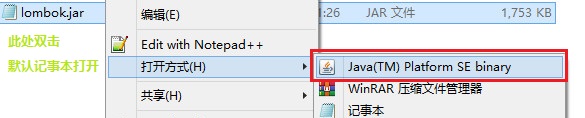 雙擊下載好的lombak.jar (此處注意雙擊的打開(kāi)方式是Java™Platform SE binary ,該工具是eclipse自帶的,因?yàn)橄旅姘惭b原理會(huì)修改eclipse的配置文件),有些會(huì)自動(dòng)搜索電腦eclipse安裝所在的路徑,然后直接下一步即可