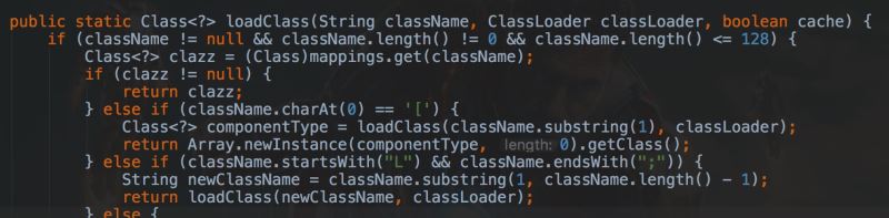 但是在加載的過程中,fastjson有一段特殊的處理,那就是在具體加載類的時(shí)候會(huì)去掉className前后的L和;,形如Lcom.lang.Thread;。