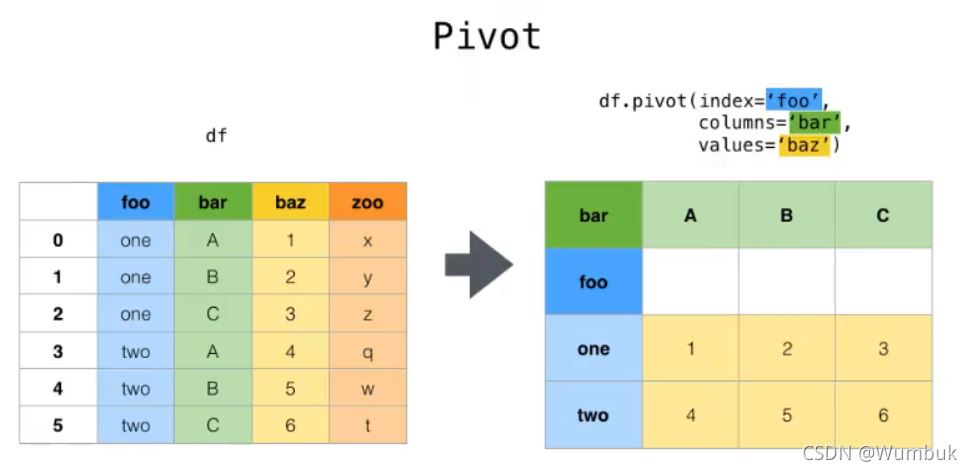 pivot方法相當于對df使用set_index創建分層索引,然后調用unstack