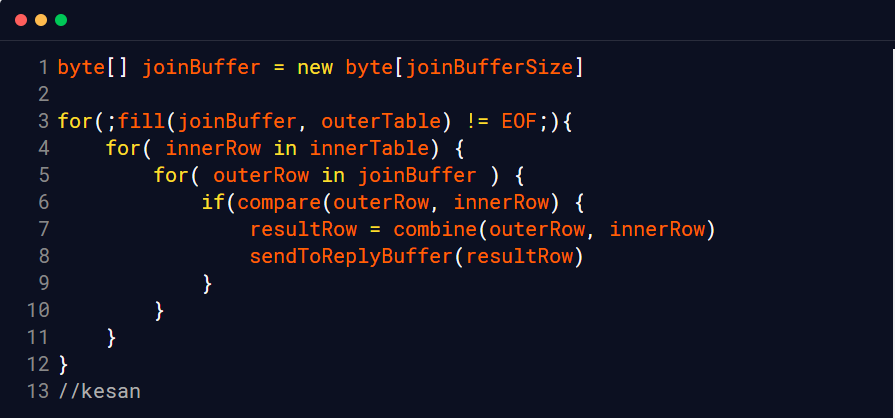 嵌套循環(huán),每次只讀取表中的一行數(shù)據(jù),也就是說(shuō)如果outerTable有10萬(wàn)行數(shù)據(jù), innerTable有100行數(shù)據(jù),需要讀取10000000次(假設(shè)這兩個(gè)表的文件沒有被操作系統(tǒng)給緩存到內(nèi)存, 我們稱之為冷數(shù)據(jù)表)