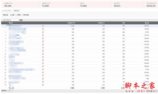 這是一個幾十萬級別的站點關鍵詞來源數據,下圖是百度統計關鍵詞列表的第一頁: