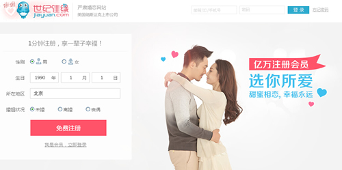 2011年5月11日,世紀佳緣登陸美國納斯達克全球精選市場進行首次公開募股,成為首家上市的中國在線婚戀交友平臺,股票交易代碼為“DATE”。根據艾瑞咨詢的數據,2011年按照獨立用戶訪問量以及用戶瀏覽時間,世紀佳緣在中國所有婚戀交友網站中均名列第一。截至2014年1月13日,世紀佳緣已擁有逾1億注冊用戶。